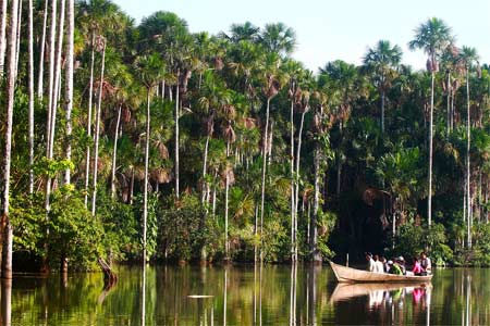 The Tambopata river basin has one of the highest rates of biological diversity in the world. The Tambopata National Reserve is located in the middle and lower zone of this basin, neighboring the city of Puerto Maldonado. Among its most common ecosystems are aguajales, swamps, pacales and riverine forests, whose physical characteristics allow local people to take advantage of natural resources.
